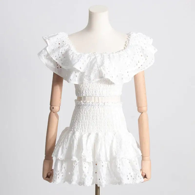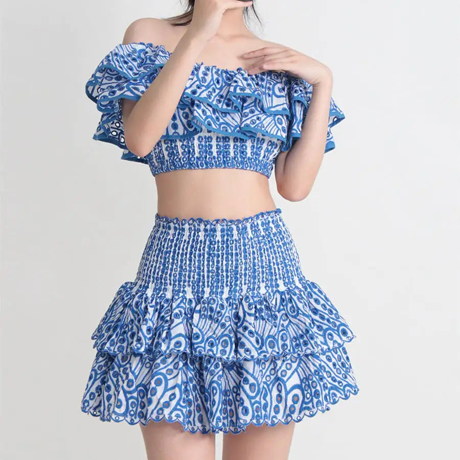 This eye-catching outfit features a collared short ruffled shirt paired with a high-waist skirt, creating a flattering silhouette ideal for warm-weather adventures. Available in four vibrant shades — black, white, blue, and yellow — it lets you express your unique style with ease.